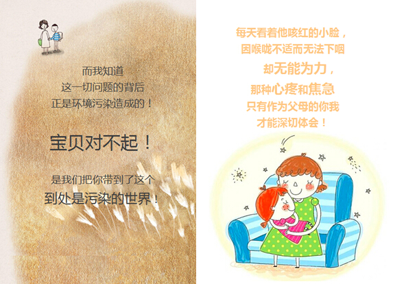 穹顶之下,相信每一位爸爸妈妈最大的愿望就是希望自己的宝宝能够健康地成长。但是,越来越多的雾霾天却夺去了宝宝和大自然亲密接触的美好时光。当我们不再为漫天飞舞的柳絮所赞叹时,因为我们知道,那是空气污染的产物!