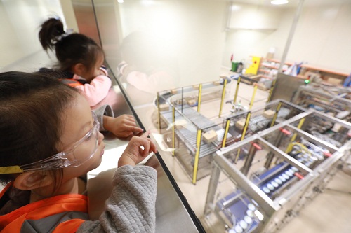 在伊利大洋洲生产基地同事们的组织和带领下,家长和孩子们还参观了原装原罐进口的金领冠睿护的产品生产线。孩子们兴致高涨地看着他们常喝的睿护在自动化的生产线上,经过层层检查,加工成听装奶粉,好奇聪明的样子仿佛得益于睿护的陪伴。