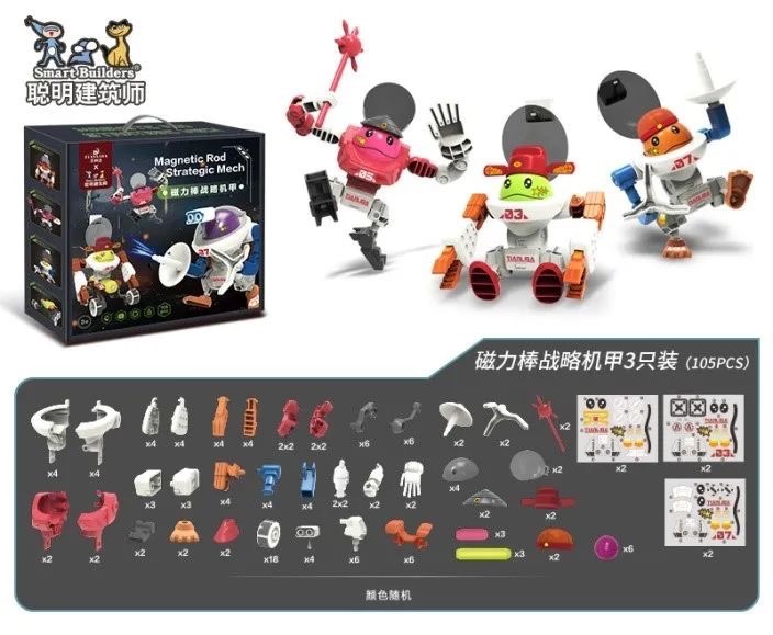 天利达推出的“聪明建筑师”系列,让儿童利用不同形状的零件来拼装不同造型,其中的机甲主题,多个零件部位,多段式拼装,可拼搭工程、探险、防御不同主题造型机甲,锻炼儿童动手能力,磁力棒与机甲结合,还可构造出战车等新造型,玩法更丰富。