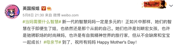 “看不到妈妈的时候,她在干什么呢”,茉莉智慧 《新一代小蝌蚪找妈妈》的故事,以孩子和爸爸的视角展示了妈妈在家庭、职场等不同场景中的多面形象,并联合@三联生活周刊在新浪微博共同发起#当妈需要什么智慧#的话题讨论。著名作家@苏芩、“情感奶爸”@陆琪、知名自媒体人@英国报姐等微博大V纷纷参与了讨论,话题阅读量高达1.1亿次。