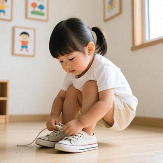 系鞋带十分钟?别急着代劳。鼓励孩子:“再试一次,你一定能行!”试错的过程比结果更重要。