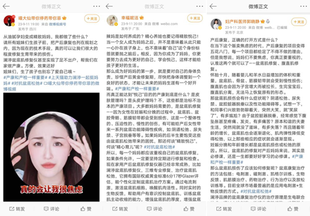 上述科普医生、健康博主和经验丰富的宝妈纷纷借助自己的影响力,将盆底健康知识传递给更多女性。在微博热搜话题页,用图文和视频的方式向网友介绍盆底健康的重要性,以及如何通过盆底肌肉锻炼、专业仪器等手段来恢复盆底肌功能、预防和治疗各种盆底功能障碍。一时间,#产康和产检一样重要#话题成为社交讨论的热潮,网友纷纷在平台留言,“这是生育后普遍存在的问题,但是科普却很少,很多女性当妈好几年都不知道怎么治疗“、“宝妈们一定要注意盆底健康”、“产后修复真的是很重要”、“过来人真的有话说,盆底肌修复真的太太太重要,希望越来越多的女性重视起来”。