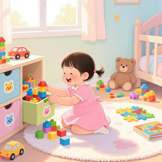 一开始,孩子可能会把玩具堆进错误的箱子,或只收两三件就失去耐心。这时,分解目标 和具体表扬 是关键: