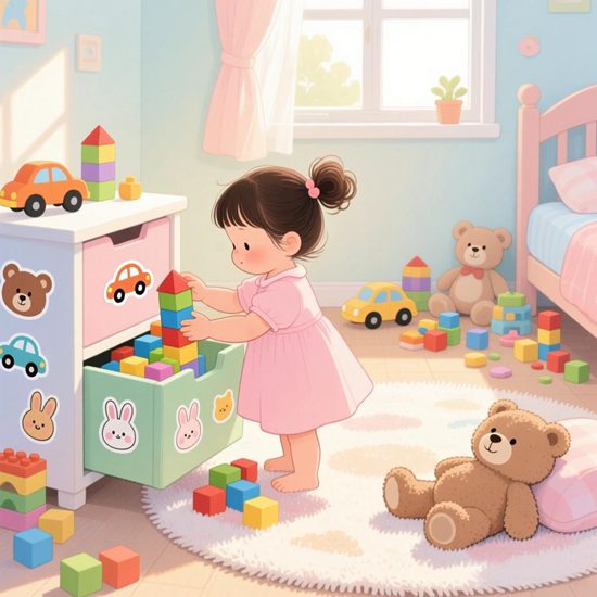 关键细节 :收纳箱的高度要让孩子无需踮脚就能轻松取放;颜色可以鲜艳些,像游戏道具一样吸引孩子主动靠近。