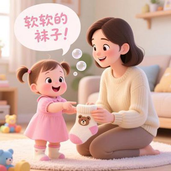 怎么做 :给孩子穿袜子时,夸张地说:“这是蓝色的袜子!软软的,像云朵一样!”玩积木时指着说:“方方的积木,叠高高!”