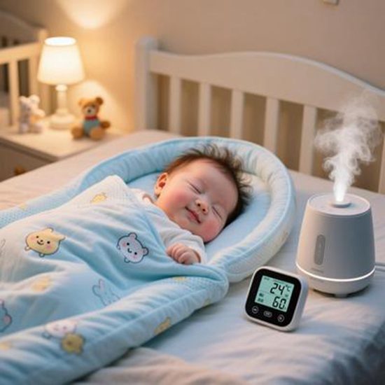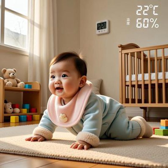 湿度管理 :保持50%-60%湿度,干燥易诱发湿疹或鼻塞,可用加湿器或晾湿毛巾调节。