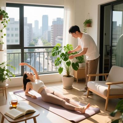改造时先清空杂物,摆放几盆净化空气的绿植——绿萝、吊兰能吸附甲醛与异味,常春藤可过滤粉尘,都是备孕友好型选择;需避开百合、月季等易引发花粉过敏的植物,防止反复过敏影响卵子与精子质量。天气晴朗时,在阳台铺块瑜伽垫做拉伸、冥想,或晒20分钟太阳补充维生素D,既能缓解备孕焦虑,又能增强体质,让小阳台成为专属的“备孕活力角”。