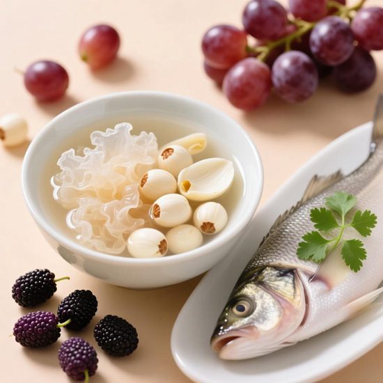 桑葚是天然的“补血果”,能滋肾阴、润肠燥;葡萄则富含抗氧化物质,有助于改善阴虚引起的疲劳感。可作为加餐水果,每日适量食用。