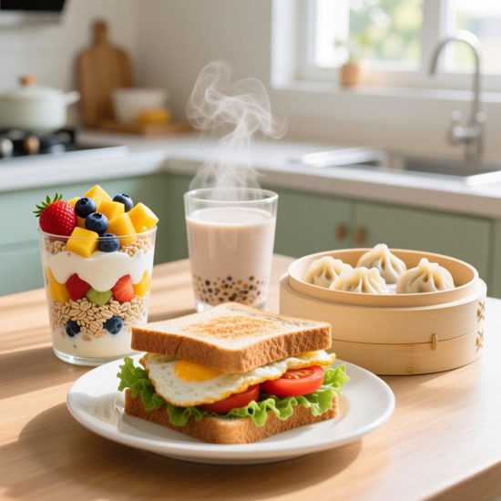 全麦面包打底,夹入煎蛋、生菜、番茄片和少量鸡胸肉,再配一杯温牛奶。这款搭配蛋白质充足,碳水适中,维生素丰富,尤其适合需要快速补充能量的早晨。