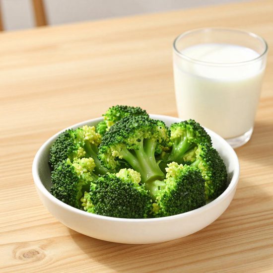 并非所有高钙食物都等于高热量。比如西兰花,堪称孕期“补钙标兵”——每100克含钙67毫克,热量仅35千卡,还富含膳食纤维,清炒或凉拌都能保留营养。另一款宝藏食物是脱脂牛奶,钙含量与全脂牛奶持平(约120毫克/100毫升),但脂肪含量减少90%,更适合需要控重的孕妈。