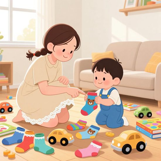 2、干扰项挑战 :混入相似但不相同的物品(如条纹袜与波点袜),让孩子学会排除干扰;