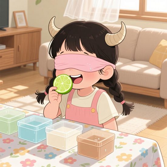 准备几个不透明的小盒子,每个盒子里放入一种有明显气味和味道的安全食物,如柠檬片、巧克力、香蕉块、薄荷糖等。让孩子闭上眼睛,先闻一闻盒子里的气味,猜猜里面是什么,再尝一小块验证自己的答案,并描述味道(酸、甜、苦、香等)。