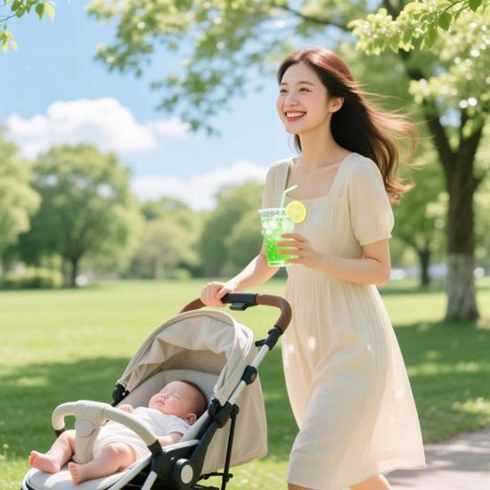 专业建议:选择上午10点前或下午4点后,涂抹SPF30物理防晒霜(避免化学剂刺激产后敏感肌),戴宽檐帽打造“移动式荫凉”。